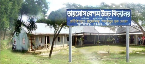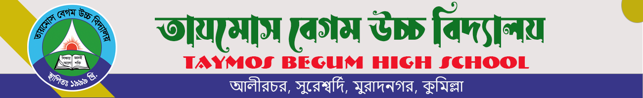 তায়মোস বেগম উচ্চ বিদ্যালয়গ্রামঃ আলীরচর, ডাকঘরঃ সুরেশ্বর্দি, উপজেলাঃ মুরাদনগর, জেলাঃ কুমিল্লা।প্রতিষ্ঠাতাঃ প্রফেসর (অবঃ) শামসুল হক মোল্লা।স্থাপিতঃ ১৯৯৯ খ্রিঃ প্রতিষ্ঠান প্রধানের শুভেচ্ছা বাণী জীবনের প্রতিটি ক্ষেত্রে সফলতা ও উন্নতির জন্য শিক্ষার কোন বিকল্প নেই। ছাত্র-ছাত্রী তথা আগামী প্রজন্মকে আলোকিত মানুষ হিসাবে গড়ে তোলার নিপুণ কারিগর হচ্ছেন শিক্ষক। শিক্ষকদের হাত ধরেই জাতি উজ্জ্বল ভবিষ্যৎ নির্মাণের সিঁড়ি অতিক্রম করে। উন্নত বিশ্বে তাই শিক্ষাকে দেওয়া হয়েছে সবার উপর। আর এ শিক্ষাকে বাস্তবায়নের সর্বোৎকৃষ্ট মাধ্যম হচ্ছে শিক্ষা প্রতিষ্ঠান। মানুষ একটি পরিপূর্ণ জীবন প্রত্যাশা করে। সেই জীবন হবে নান্দনিক ও আনন্দময় । পাশাপাশি মানুষ পারিবারিক, সামাজিক ও বৈশ্বিক প্রেক্ষাপটে নিজ... বিস্তারিত